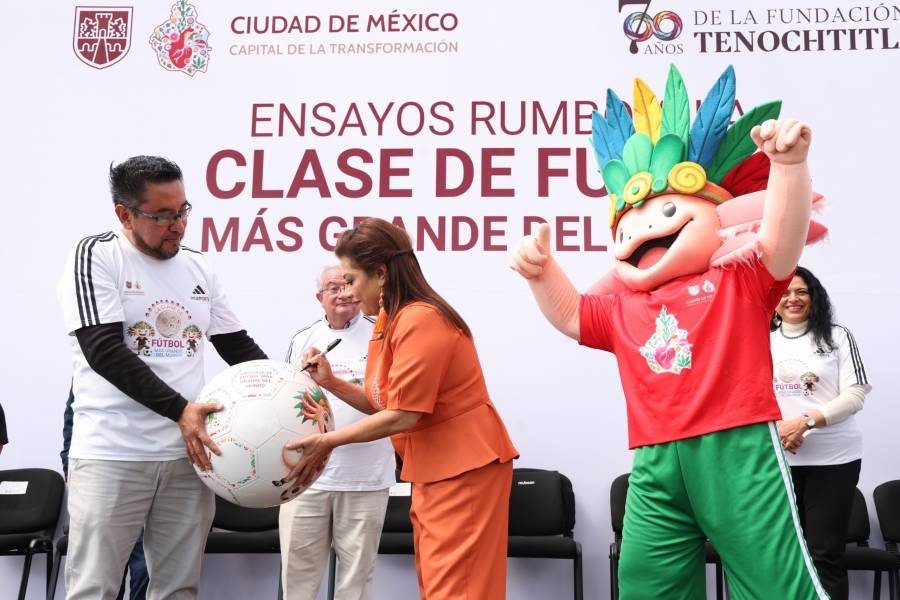 Clara Brugada Molina, Jefa de Gobierno de la Ciudad de México, dio inicio este miércoles a los ensayos oficiales de la Clase de Futbol Más Grande del Mundo, un evento programado para el 1 de marzo de 2026, como parte de las actividades previas a la Copa Mundial de la FIFA.