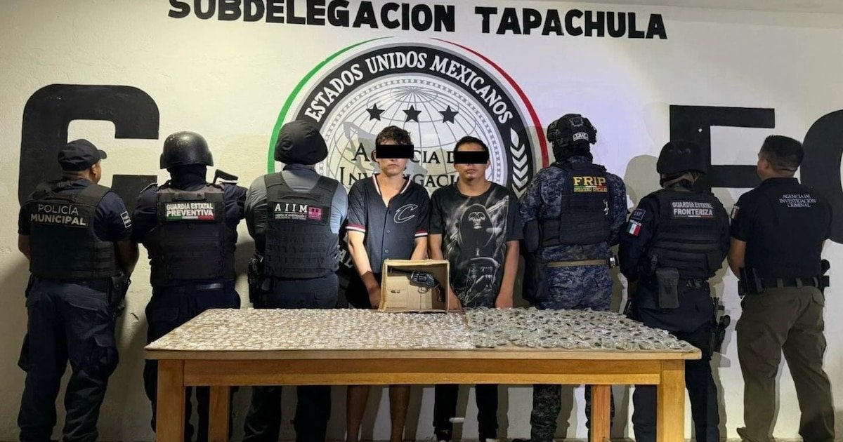 ¡Golpe al crimen en la frontera! Dos hombres de origen extranjero, identificados como Juan “N” (venezolano) y Enrique “N” (guatemalteco), fueron detenidos en Tapachula, Chiapas, por elementos de la Guardia Estatal Preventiva, Fuerza de Reacción Inmediata Pakal (FRIP), Guardia Estatal Fronteriza, la Fiscalía del Estado y Fuerzas Armadas. El arresto ocurrió durante patrullajes preventivos en la 20 Avenida Norte y 5ta Calle Poniente, a la altura del Malecón.