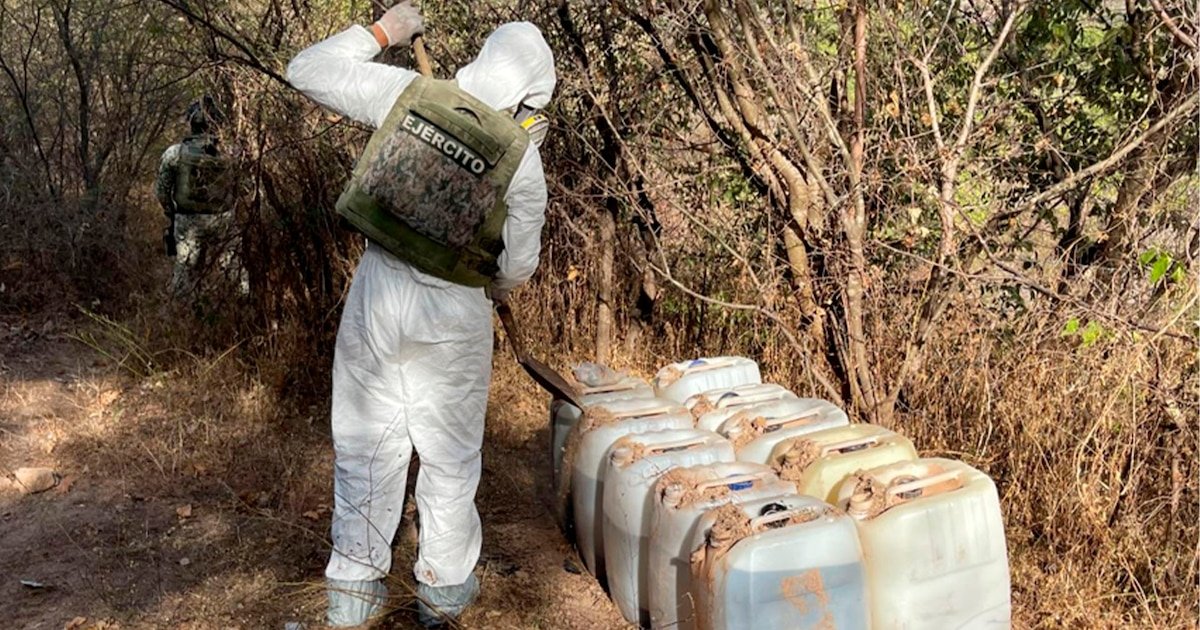 El golpe maestro vino con el desmantelamiento de siete laboratorios de metanfetamina en zonas rurales de Culiacán, como El Huejote y Bagrecitos. El Ejército aseguró 3 mil 350 litros de químicos para drogas sintéticas, cortando el suministro como quien desconecta el Wi-Fi en casa de un gamer.