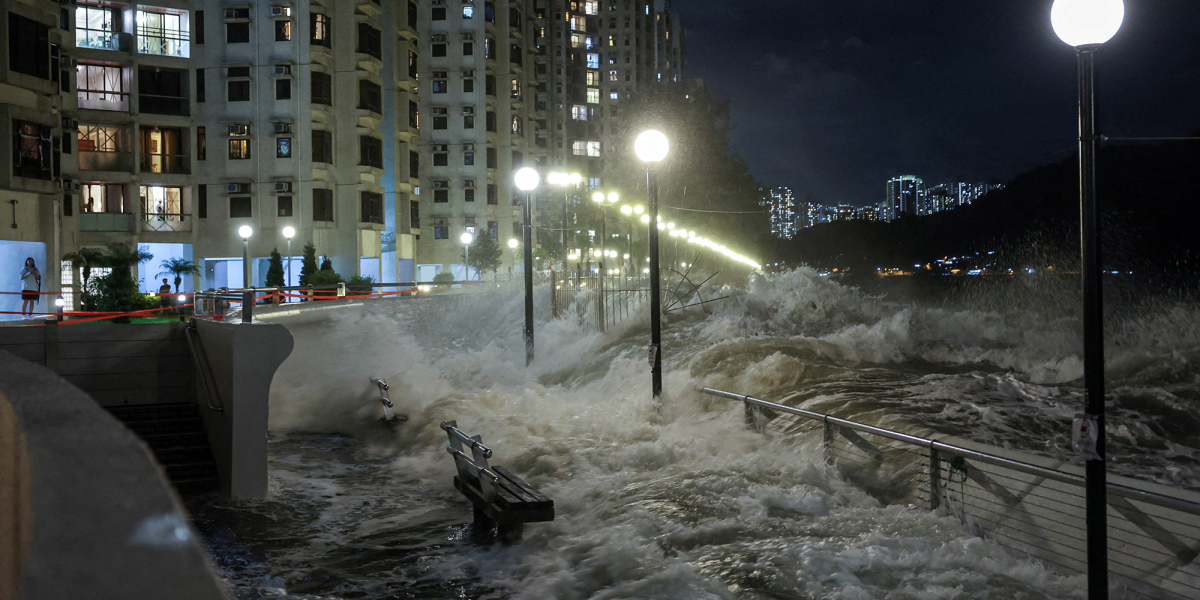Debido al tifón, el transporte en la ciudad semiautónoma china se detuvo el martes y los comercios cerraron sus puertas. Un reportero de AFP observó olas de casi cinco metros de altura rompiendo contra el paseo marítimo del barrio residencial de Heng Fa Chuen, en Hong Kong, al anochecer. Terence Choi, un residente local, mencionó que había acumulado provisiones para dos días en su hogar y expresó estar «bastante nervioso» por el riesgo de cortes en el suministro de electricidad o agua potable.