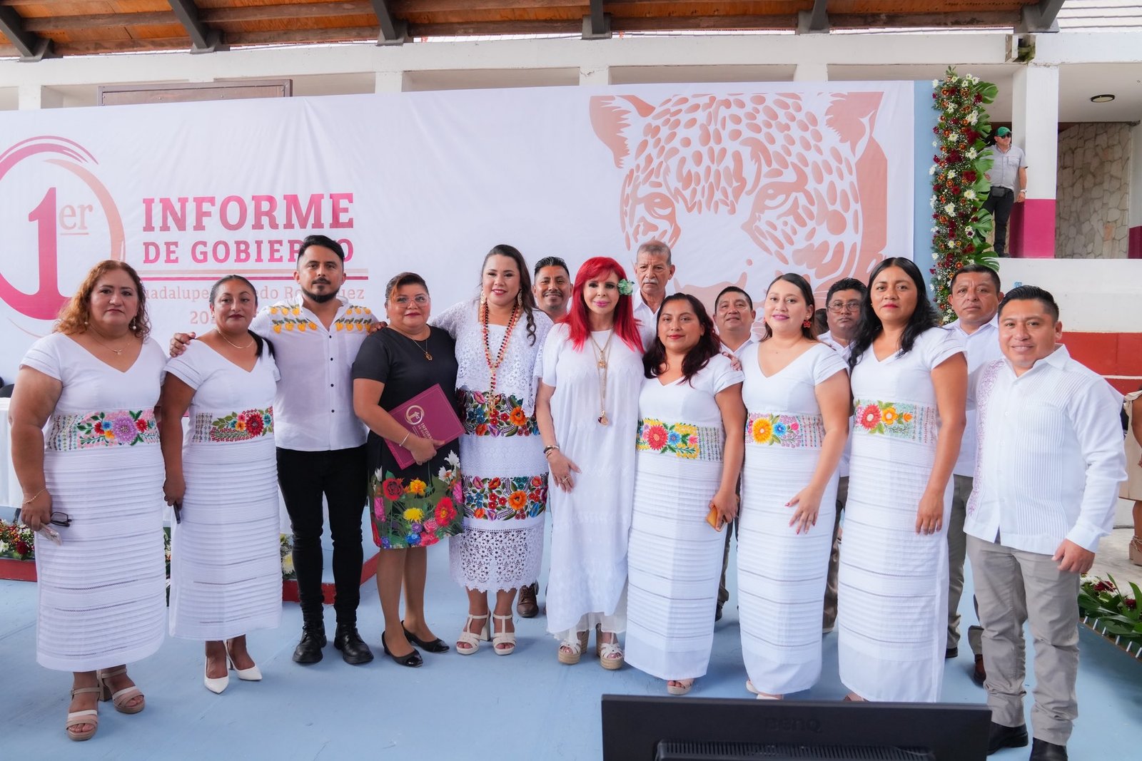 La gobernadora de Campeche, Layda Sansores San Román, asistió como invitada de honor al primer informe de gobierno de la alcaldesa de Calakmul, Guadalupe Acevedo Rodríguez, que se llevó a cabo en la cancha de usos múltiples del municipio.